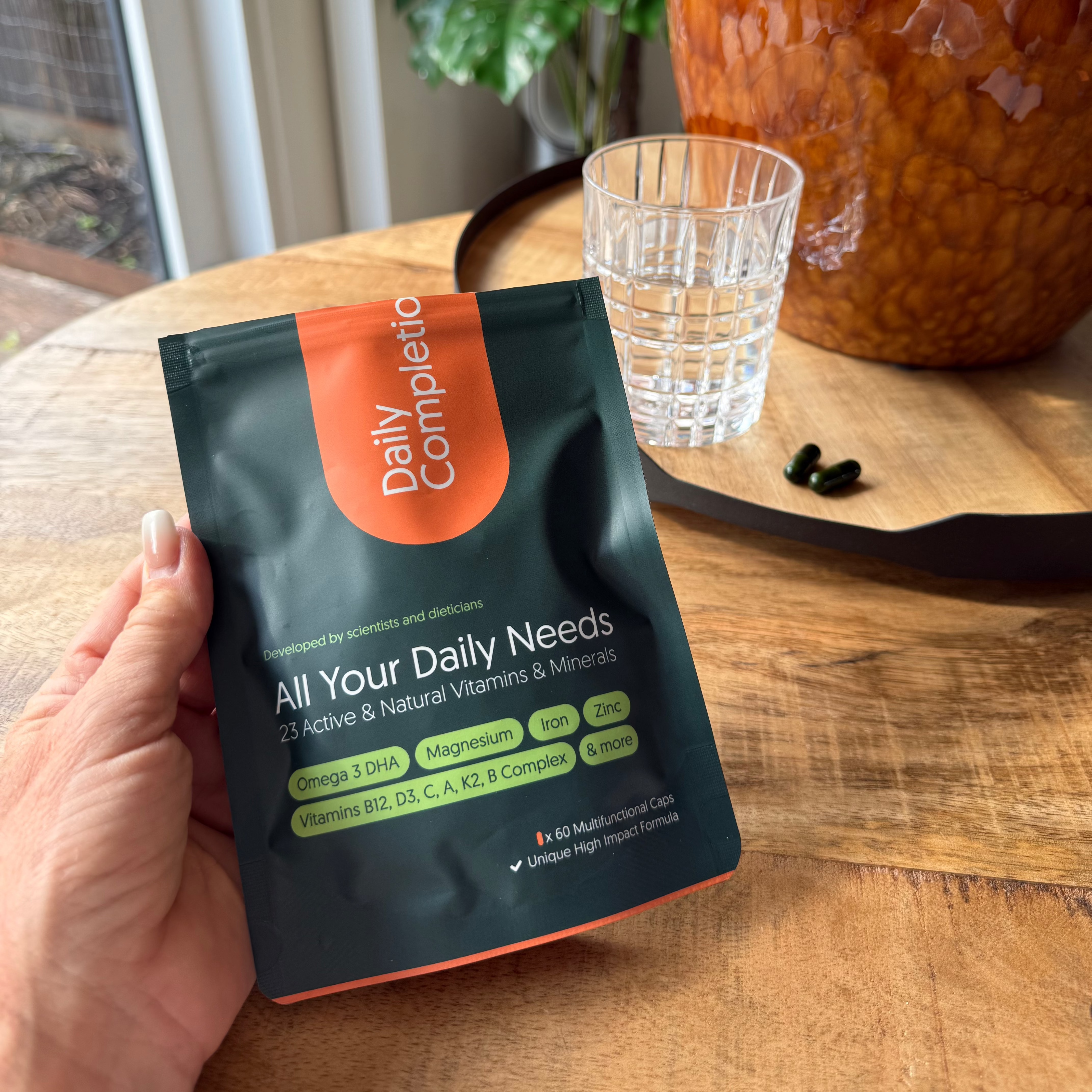 Daily Completion is ontwikkeld op basis van data en de input van 2.500 Nederlanders. Samen met diëtisten formuleerden we een eenvoudige, effectieve oplossing voor dagelijkse tekorten: 23 essentiële, actieve en natuurlijke voedingsstoffen, precies afgestemd op wat je lichaam écht nodig heeft.